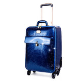 Travel in luxurious style with this beautifully designed trolley bag, featuring an elegant embossed floral pattern and a glossy finish. Perfectly blending fashion and functionality, it offers a spacious interior for organized packing and a secure front compartment for quick access to essentials. The sturdy retractable handle and smooth-rolling wheels ensure effortless maneuverability, making this trolley bag an ideal choice for business trips, vacations, or weekend getaways.