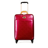 Textured and timeless, our suitcase is constructed in a rich shine leather and finished with sleek gold-tone hardware. Rely on this piece for weekend getaways and travel abroad for years to come. Your ticket to first-class fabulous, this polished carry-on is crafted from durable double-coated gloss leather. 360-degree spinning wheels and plenty of compartments keep this stylish suitcase in line with the modern day frequent flier.