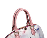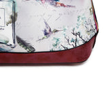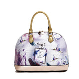 Elevate your accessory game with the Arosa Elegance Dome Bag, a perfect blend of art and functionality. Featuring a stunning print of elegant perfume bottles, fluttering hummingbirds, and vibrant floral elements, this dome-shaped bag is a statement piece.