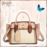 Brangio Italy Mini Ostrich-Embossed Designer Satchel – Faux Leather Small Purse with Gold Lock & Strap | U.S.A. Company Ships from L.A.