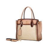 Brangio Italy Ostrich-Embossed Luxury Handbag – Neutral Faux Leather Satchel Purse with Gold Lock Accent | U.S.A. Company Ships from L.A.