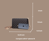 W: 12.25" x H: 13" x SL: 5.6" X Handle: 2" + Adjustable Shoulder Strap