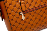 Brangio Italy Monogram Designer Satchel – Cognac Faux Leather Handbag with Signature “B” Heart Print & Convertible Strap | U.S.A. Company Ships from L.A.