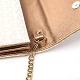 Step into elegance with this stunning crossbody bag featuring a delicate floral pattern and a sleek gold chain strap. Designed for the modern trendsetter, this bag combines practicality with sophisticated charm. Its compact design is perfect for carrying your essentials, while the polished gold hardware and chain add a luxurious touch. Ideal for casual outings or evening occasions, this bag is sure to complement any outfit with effortless style.