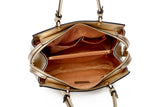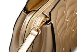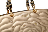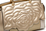 Brangio Italy Rose Embossed Gold Designer Handbag – Faux Leather Satchel with Rhinestone Accents & Convertible Strap | U.S.A. Company Ships from L.A.