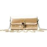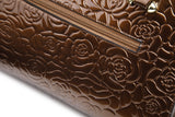 Add a touch of luxury to your wardrobe with the Brangio Embossed Rose Handbag. Featuring a radiant gold exterior with a beautifully embossed rose design, this handbag is both stylish and sophisticated. The front flap is secured with a chic lock, making it not only visually stunning but also practical for your everyday needs. Gold-tone hardware and a sparkling crystal accent complete this elegant piece, making it the perfect accessory for any occasion, from day outings to evening events.