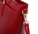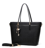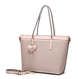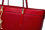 Inspired by the romantic allure of Italian architecture and timeless European artistry, the Brangio Italy Signature Tote in classic cognac brown brings together high fashion and everyday function. Its sleek silhouette is adorned with precision-embossed geometric patterns and finished with gold-tone hardware for a touch of sophistication. A luxe heart & key charm dangles playfully from the handle, adding charm and personality. Designed with both travel and daily elegance in mind, it features a spacious multi-pocket interior, comfortable double handles, and an optional adjustable crossbody strap for versatile wear.