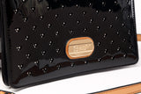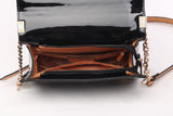 Elevate your style with this chic glossy crossbody bag, featuring delicate studded accents for a modern and sophisticated look. The compact yet spacious design is perfect for carrying essentials, while the adjustable strap and chain detailing add a touch of luxury. Whether for a casual outing or a night out, this bag is a versatile addition to your wardrobe, combining elegance with practicality.