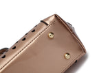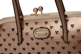 Brangio Italy Starz Art Retro Handbag – Metallic Rose Gold Faux Leather Satchel with Heart Studs, Kiss-Lock Clasp & Chain Strap | U.S.A. Company Ships from L.A.