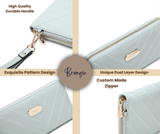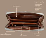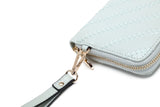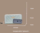 This elegant wristlet wallet is designed for those who value style and practicality. Featuring a sleek embossed design with refined detailing and a polished gold accent, this wallet is both functional and chic. Its compact size makes it perfect for carrying essentials like cash, cards, and small accessories, while the attached wrist strap ensures convenience on the go. Whether used as a standalone piece or tucked into a larger bag, this wallet is a versatile addition to your collection.