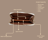 - Spacious Interior: Features compartments for cards, cash, and coins.