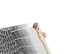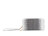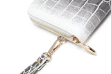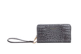 Elevate your accessory game with this chic croc-embossed wristlet wallet. Combining elegance and practicality, this wallet is designed to keep your essentials organized while making a style statement.