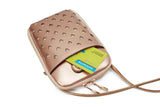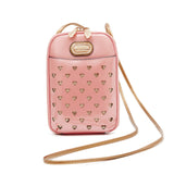 The Brangio Luxe Heart Cutout Crossbody Bag is a charming and stylish mini bag designed for the modern fashionista. Crafted in a luxurious champagne-gold finish, this bag features intricate heart cutouts adorned with shimmering crystal accents, creating a unique and playful design.