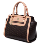 Misty U.S.A. Handbags are made from genuine bonded leather with gold plated accessories. The bag’s perfect convenient size, perforated Monogram pattern, and multi pocket interior make it modern, desirable and trendy. It's leather bag handle enables a hand or elbow carry while the removable and adjustable leather strap a shoulder or cross-body wear.