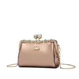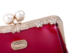 • 🌸 Crystal floral detailing with a pearl kiss-lock clasp