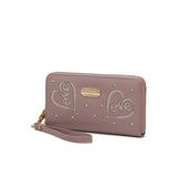 Add a touch of glamour to your everyday essentials with this stylish and sophisticated wallet, designed with dazzling embellishments and a heartfelt motif.