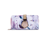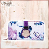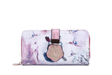 Unleash your sense of style with this elegant wallet, beautifully adorned with artistic motifs of feathers, delicate florals, and perfume bottles. The design combines sophistication with a whimsical charm, making it a perfect accessory for any occasion. A central gold-accented emblem and a textured strap add to its luxurious appeal. This wallet offers practicality with spacious compartments for your daily essentials, ensuring you stay organized while showcasing your artistic side.