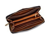 - Interior details: 2 dividers, 8 card pockets, checkbook pockets, coin pocket.