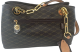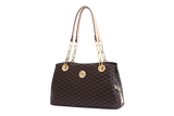 Step into sophistication with this Misty Milan shoulder bag, crafted for timeless elegance. Designed with a luxurious dark brown monogram pattern, this handbag exudes classic charm and modern functionality.