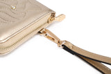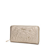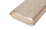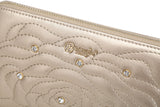 Brangio Italy Rose Quilted Zip-Around Wallet – Gold Faux Leather Wristlet Clutch with Rhinestones | U.S.A. Company Ships from L.A.