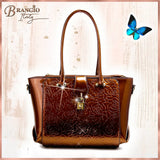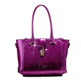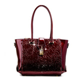 Exude elegance and style with the Brangio Patent Handbag, a masterpiece designed for the modern woman. This high-shine handbag features a striking crystal-encrusted clasp that adds a regal touch to its luxurious design. The structured silhouette ensures practicality while radiating sophistication. Perfect for day or evening, this Brangio handbag offers ample space and unparalleled style, making it a statement piece for any occasion.