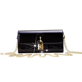 Elegance meets functionality in the Brangio Classic Patent Clutch. Crafted from glossy patent material with intricate floral embossing, this clutch makes a bold statement with its iconic lock and flower detail. The removable gold chain strap offers versatility, allowing you to wear it as a shoulder bag or a chic clutch. Perfect for evening events or special occasions, this timeless accessory embodies sophisticated style.