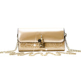 - Detachable gold chain strap for easy crossbody wear