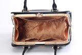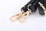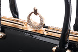 This sophisticated and ultra-glossy handbag is the epitome of elegance and luxury. Crafted with high-shine patent leather, it boasts a structured silhouette with refined gold-tone hardware accents, including a sparkling butterfly clasp and a decorative ring lock.