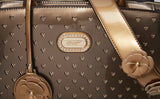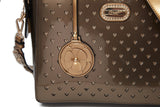 Brangio Glossy Handbag with Floral Accent
