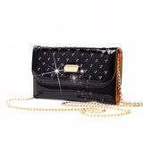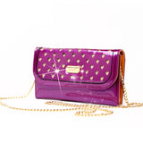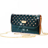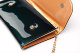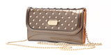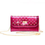 Brangio Italy Studded Clutch – Patent Faux Leather Crossbody Purse with Gold Heart Studs & Chain Strap | U.S.A. Company Ships from L.A.